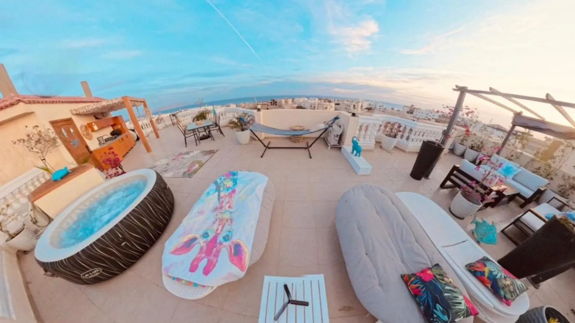 Disfruta de tus vacaciones en Sharm El-Sheikh en el The Rooftop - Amazing Apartment - Sea View - Pool - Penthouse -Jacuzzi - Sharm El Sheikh. Ideal para quienes buscan una experiencia auténtica, está situado a 20 minutos a pie de Shark Bay y a una distancia de 2 km del SOHO Square. Durante su estancia en este apartamento de 120 m^2, los huéspedes también pueden participar en actividades como esnórquel, submarinismo y equitación.